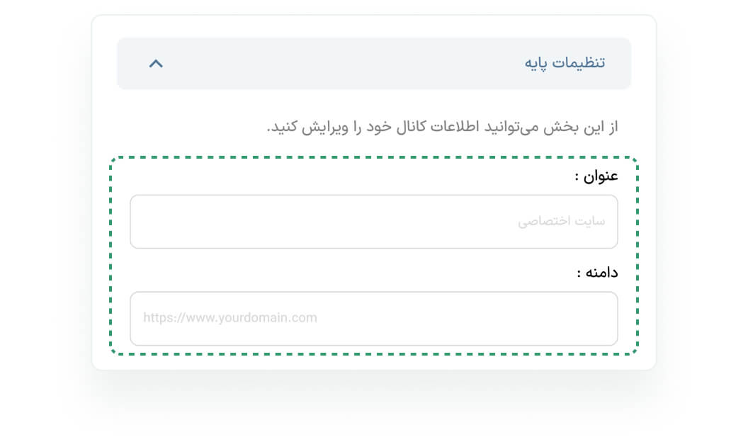 از این بخش میتوانید اطلاعات پایه شامل عنوان و آدرس سایت فروشگاهی خود را وارد کنید.