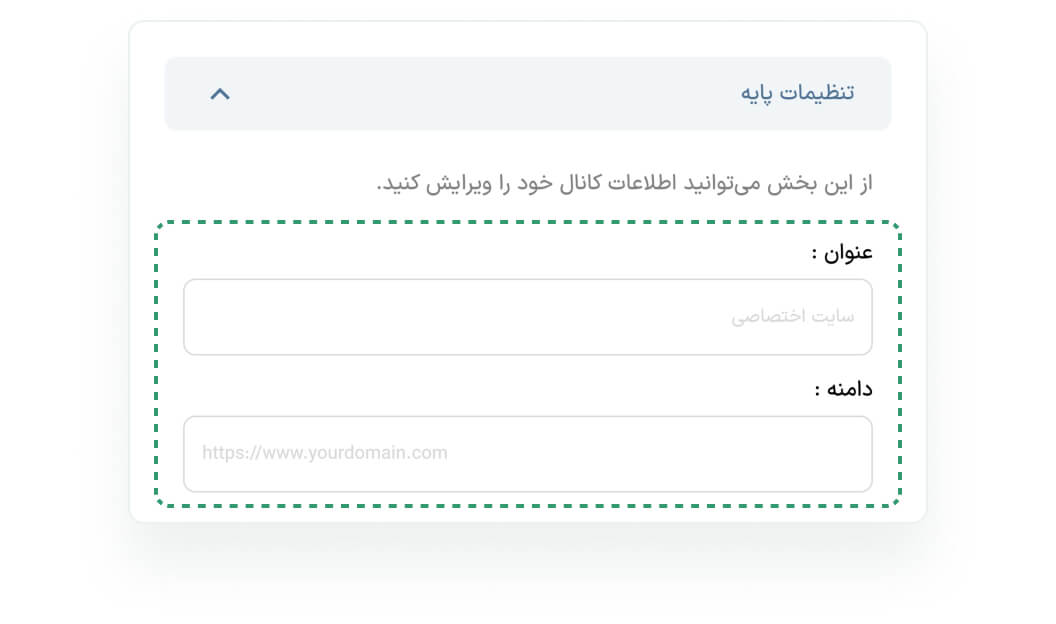 از این بخش میتوانید اطلاعات پایه شامل عنوان و آدرس سایت فروشگاهی خود را وارد کنید.