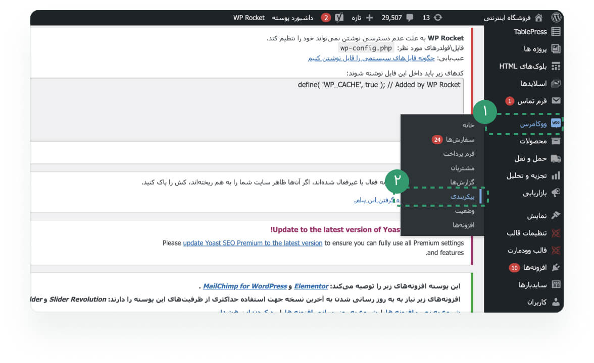 در مرحله اول وارد پیشخوان وردپرس شده و مراحل زیر را همانند تصویر انجام دهید.