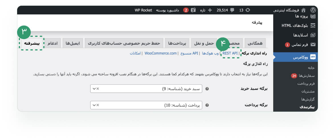 ووکامرس > پیکربندی > پیشرفته > REST API