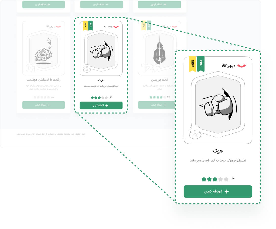 میتوانید میزان رقابت خود را از بین سه گزینه «هوشمند»، «ریال» و «درصد» انتخاب کنید.هوشمند:با انتخاب گزینه «هوشمند» مارکیتو به صورت خودکار در صورت لزوم برای رقابت با رقبای شما، قیمت تنوع کالایی شما را هوشمندانه نسبت به قیمت فروش رقبایتان کاهش خواهد داد.ریال و یا درصد:با انتخاب گزینه «ریال» یا «درصد» شما میتوانید میزان کاهش قیمت فروش تنوع کالایی مورد نظر را در رقابت با سایر رقبا تعیین کنید و مارکیتو پایینتر از آن مبلغ یا درصد، عمل قیمتگذاری را انجام نخواهد داد.در صورت استفاده از قانون هوک گزینه «هوشمند» را انتخاب کنید.