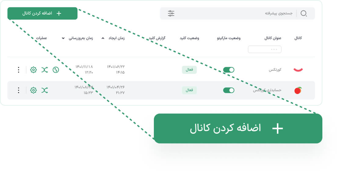 برای اضافه کردن کانال جدید به مارکیتو، کافی است؛ کانال مورد نظر خود را انتخاب کرده و سپس با کلیک روی گزینه «اضافه کردن» تنظیمات لازم برای اتصال کانال و مارکیتو را انجام دهید.