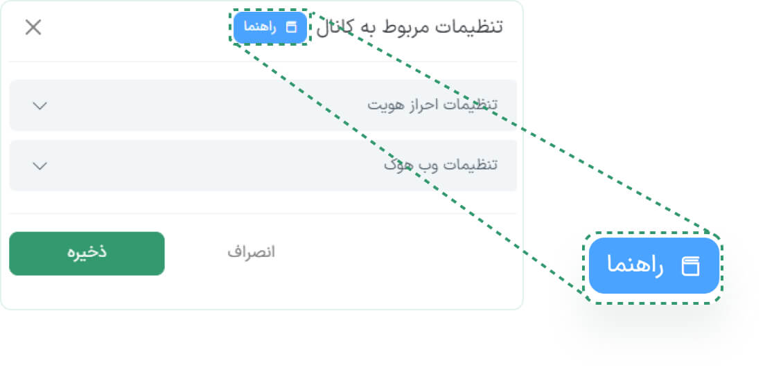 برای مشاهده راهنمای اضافه کردن هر کانال به مارکیتو، ابتدا بر روی گزینه اضافه کردن در کانال مورد نظر خود کلیک کنید و سپس با کلیک بر روی گزینه راهنما، میتوانید توضیحات تکمیلی و نحوه اتصال آن کانال به مارکیتو را مطالعه کنید.