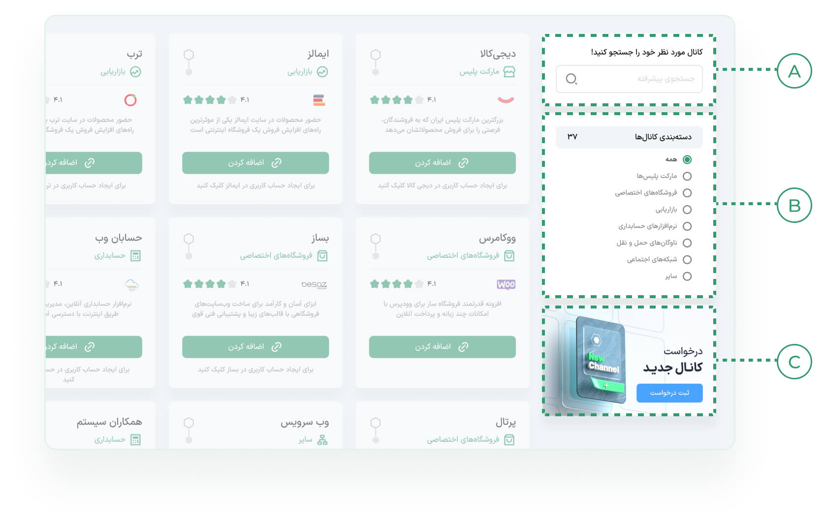 - در صورتیکه کانال مورد نظر شما در مارکیتو وجود نداشت، از این بخش میتوانید، درخواست اضافه کردن کانال جدید خود را ثبت کنید.