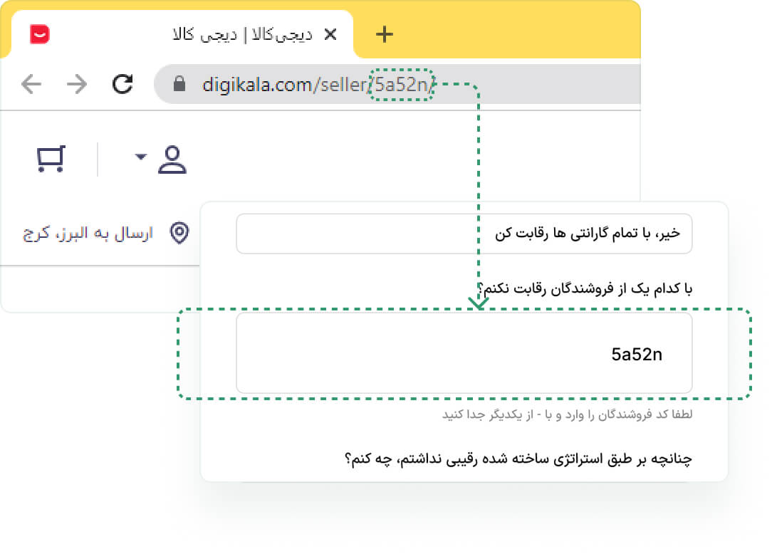 برای دریافت و مشاهده کد فروشنده، وارد صفحه فروشنده در سایت دیجیکالا شوید، کد موجود در آدرس URL صفحه نشان دهنده کد فروشنده مورد نظر شما است.