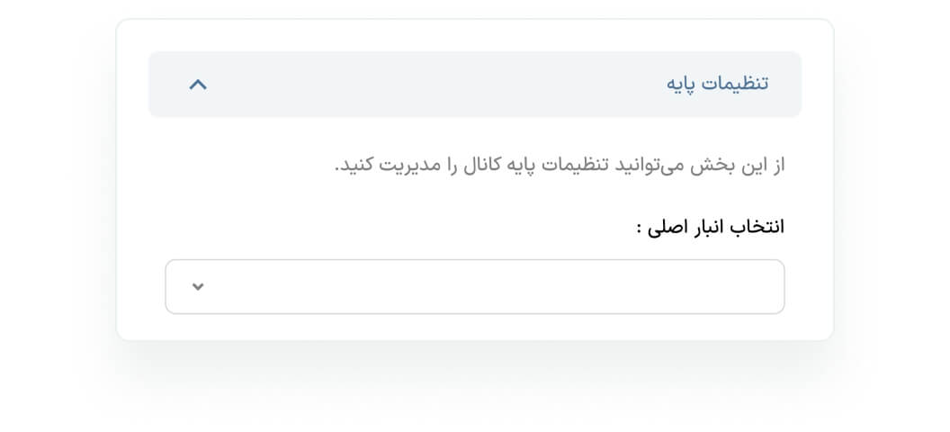 از این بخش میتوانید انبار اصلی در مارکیتو را از بین انبارهای موجود در حسابداری خود انتخاب کنید.