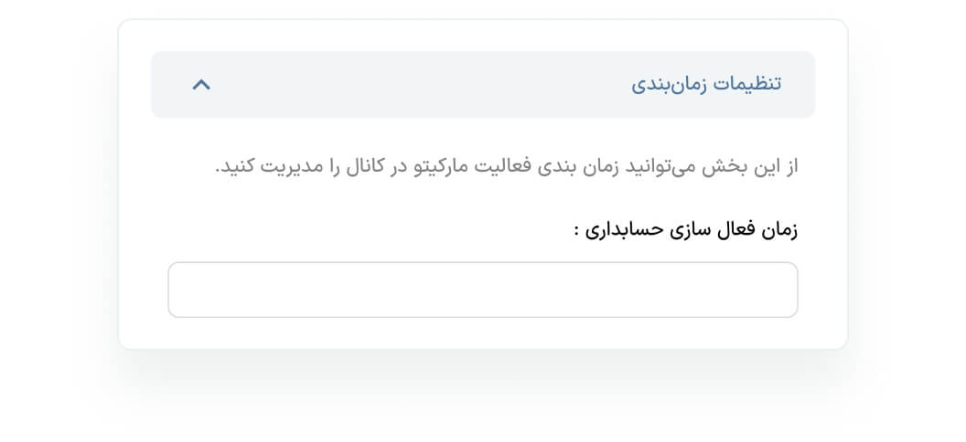از این بخش میتوانید تاریخ و ساعت شروع فعالیت مارکیتو با حسابداری حسابان وب را تعیین کنید.